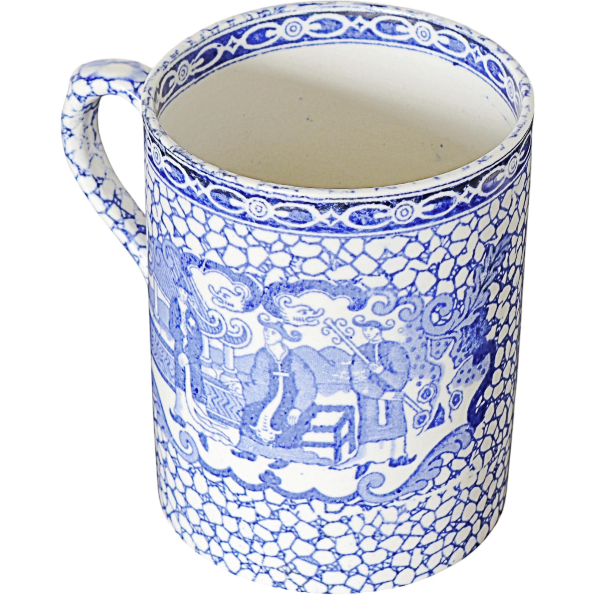 Adams Chinese blue and white pottery beer mug/tankard, transfer printed with a design first produced in the late 18th century, printed marks to base, early 20th century