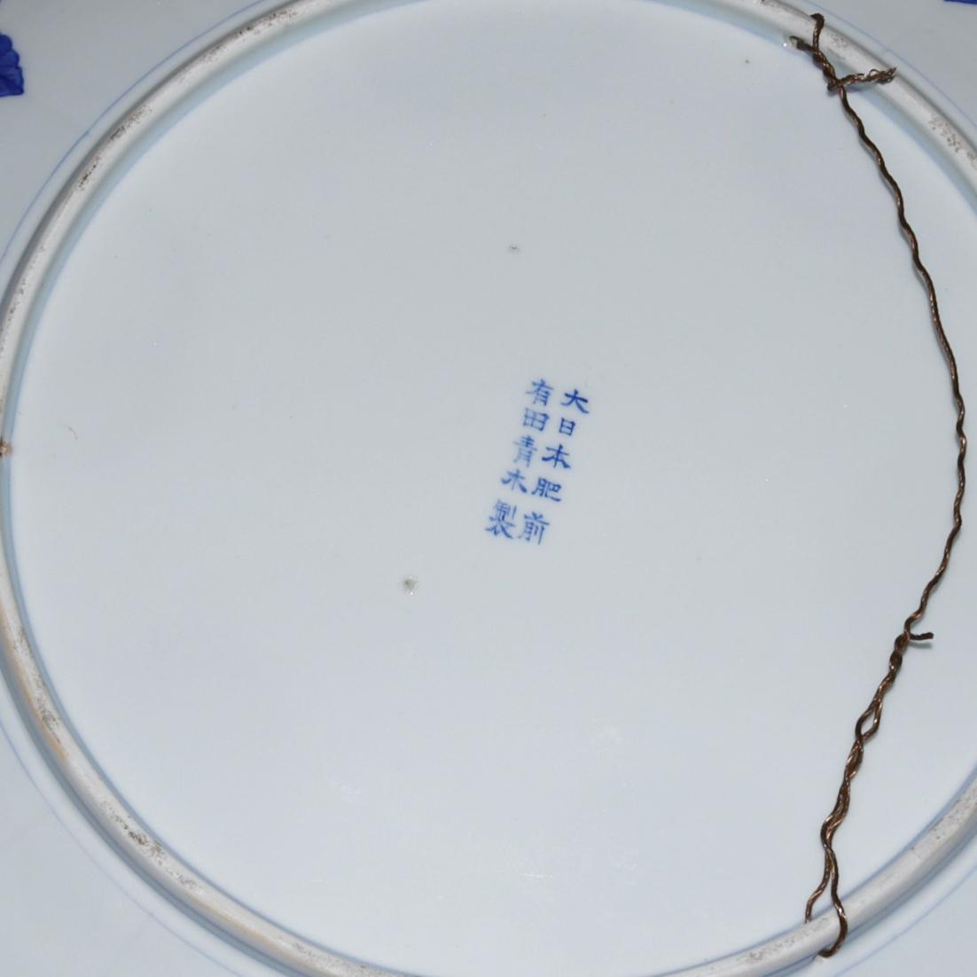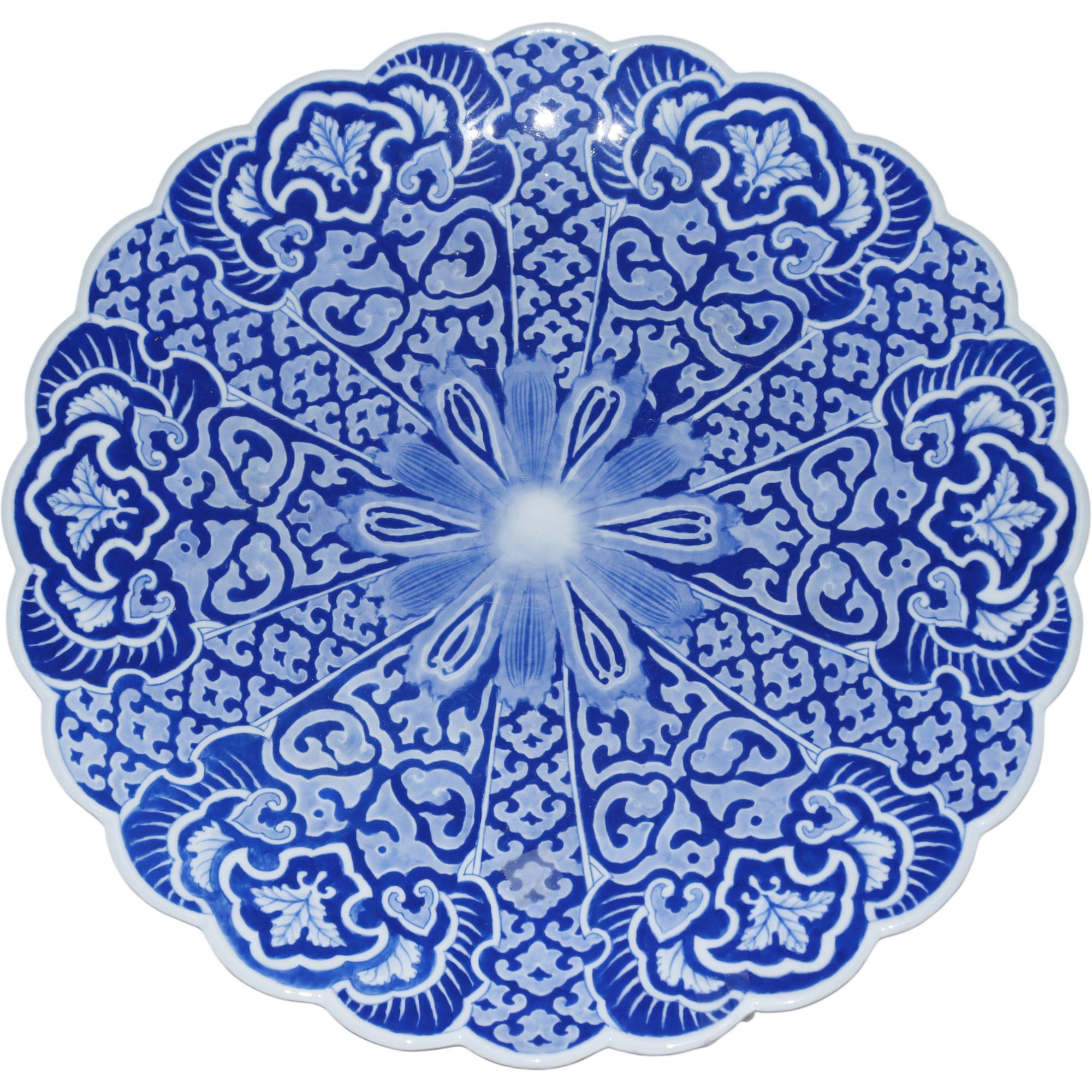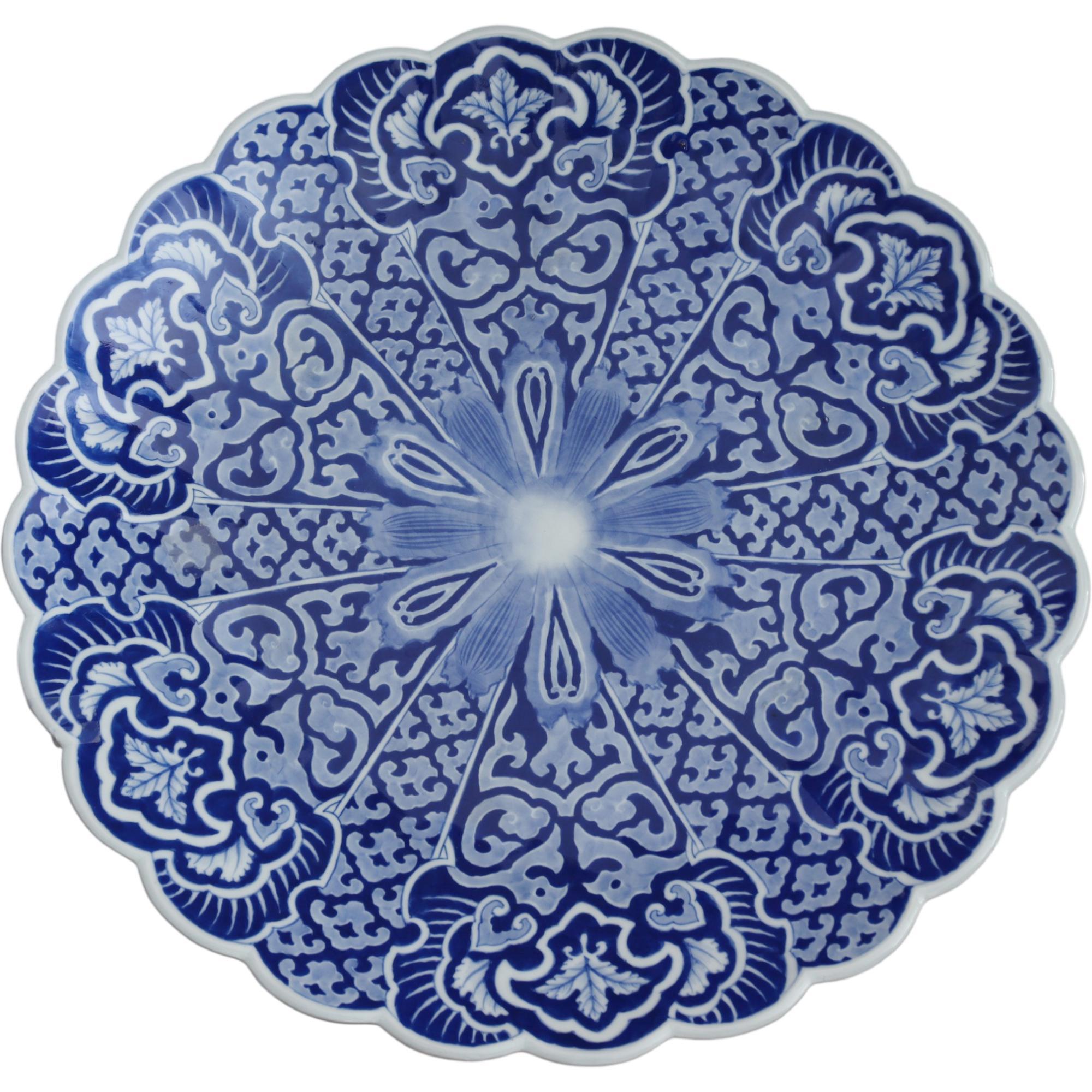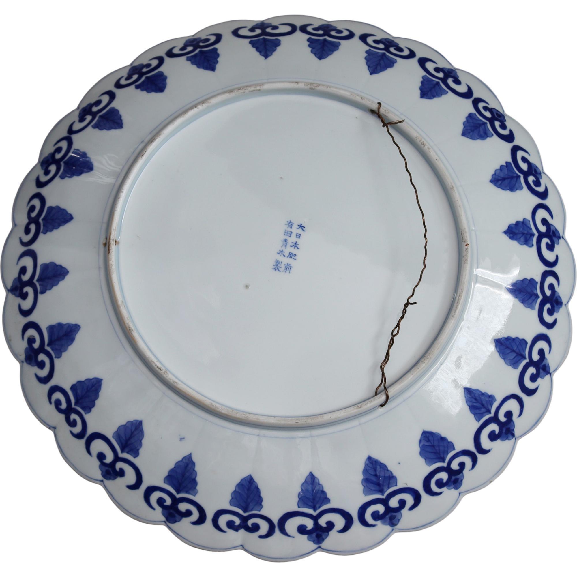 Large Japanese Meiji period blue and white Arita porcelain scalloped edged charger, early 20th century