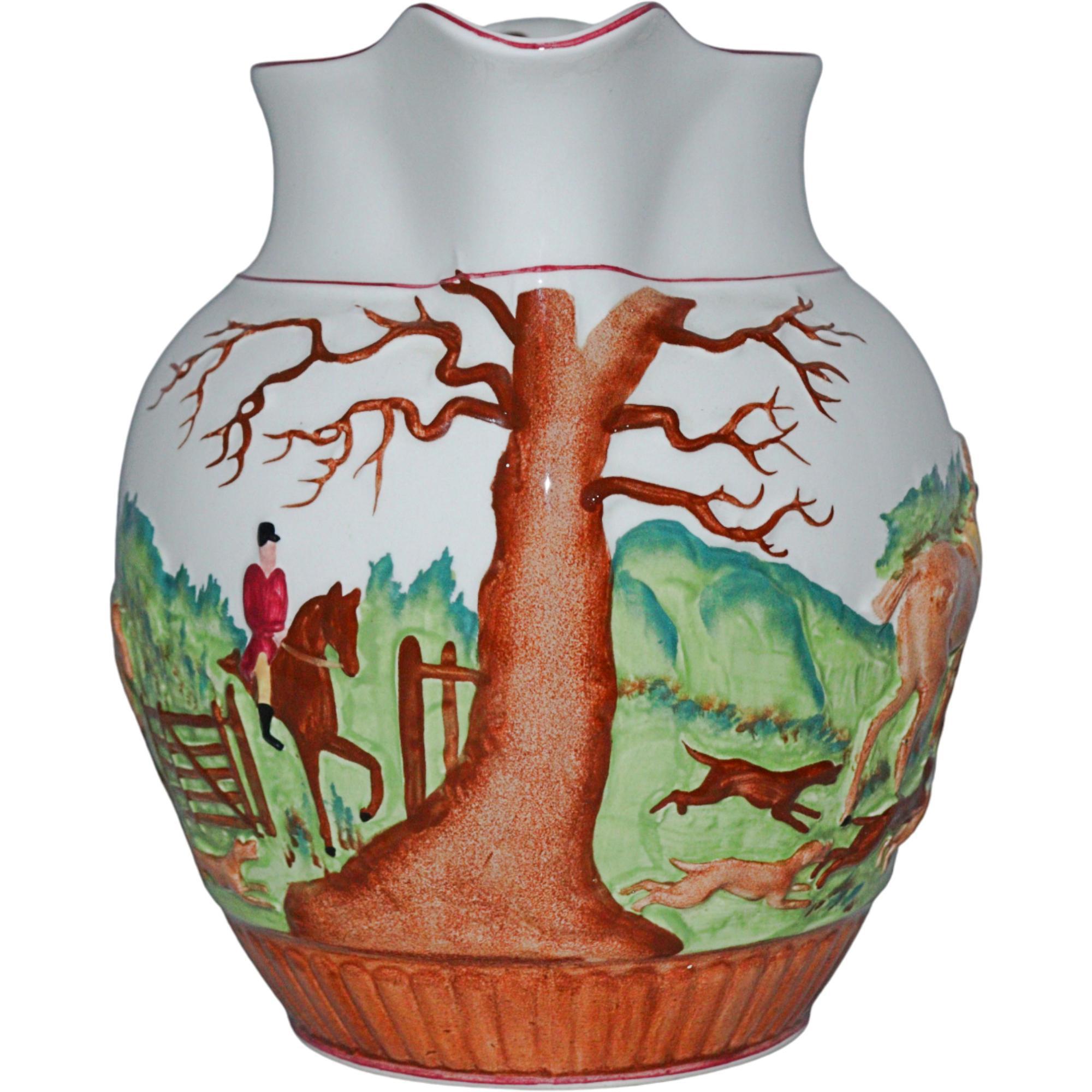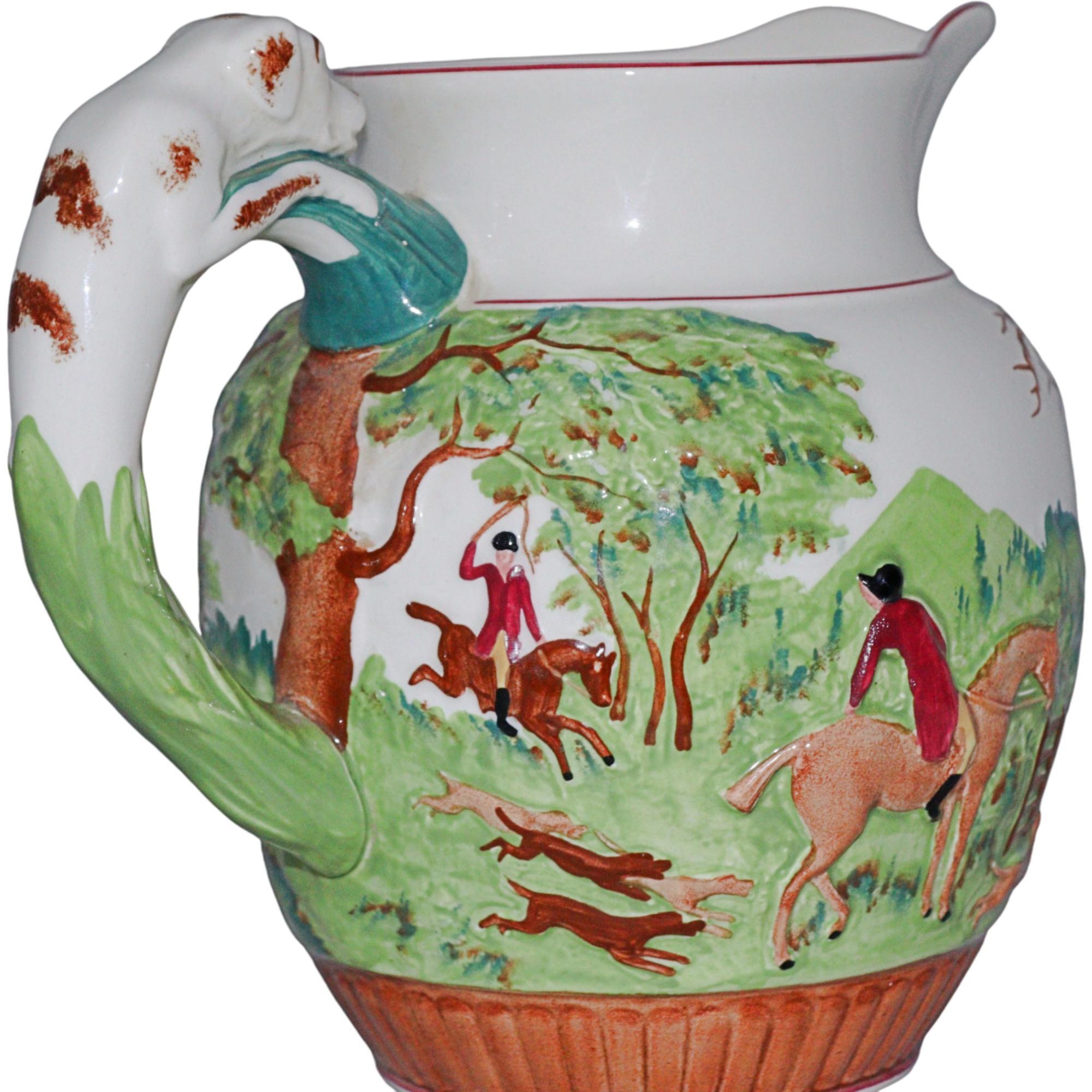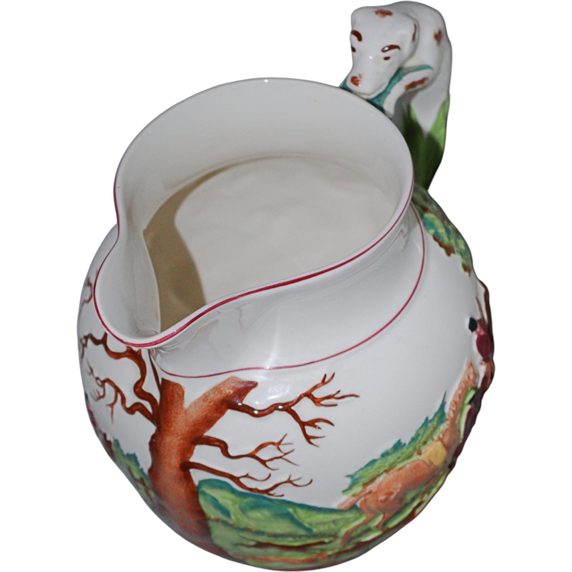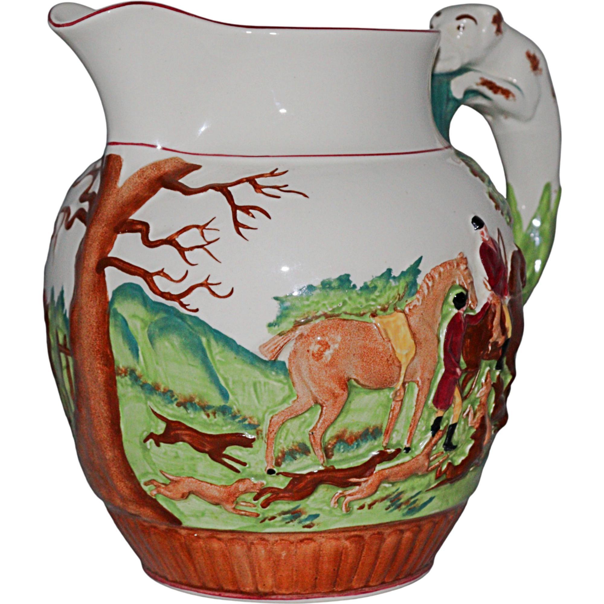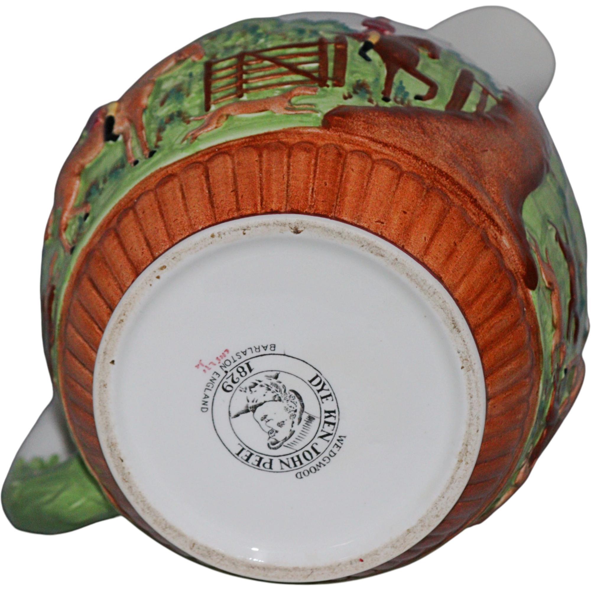 Large Wedgwood hunting jug, hand painted with a continual frieze, and dog handles, printed marks to base, Dye Ken John Peel