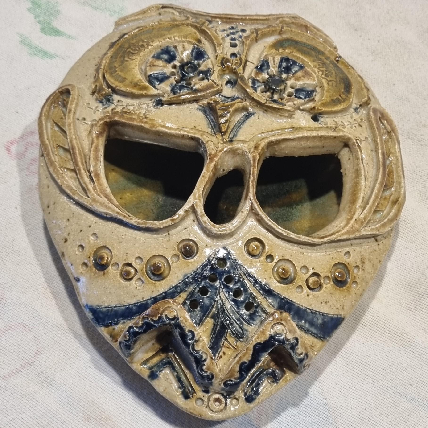 Interesting and decorative studio pottery mask sculpture,initialled C G (19) 76
