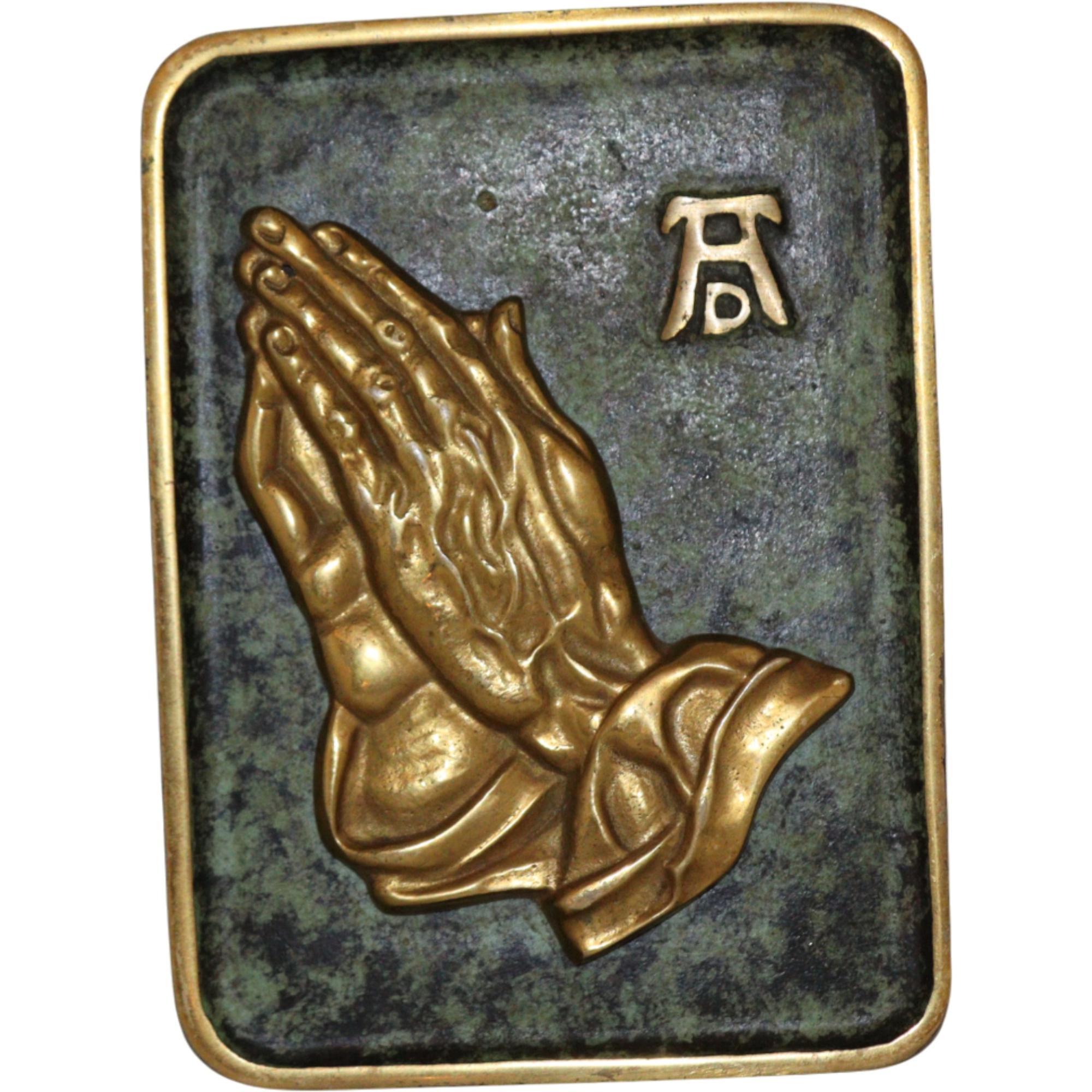 Vintage well cast patinated bronze panel/plaque after Albrecht Durer, depicting Praying Hands, mid 20th century
