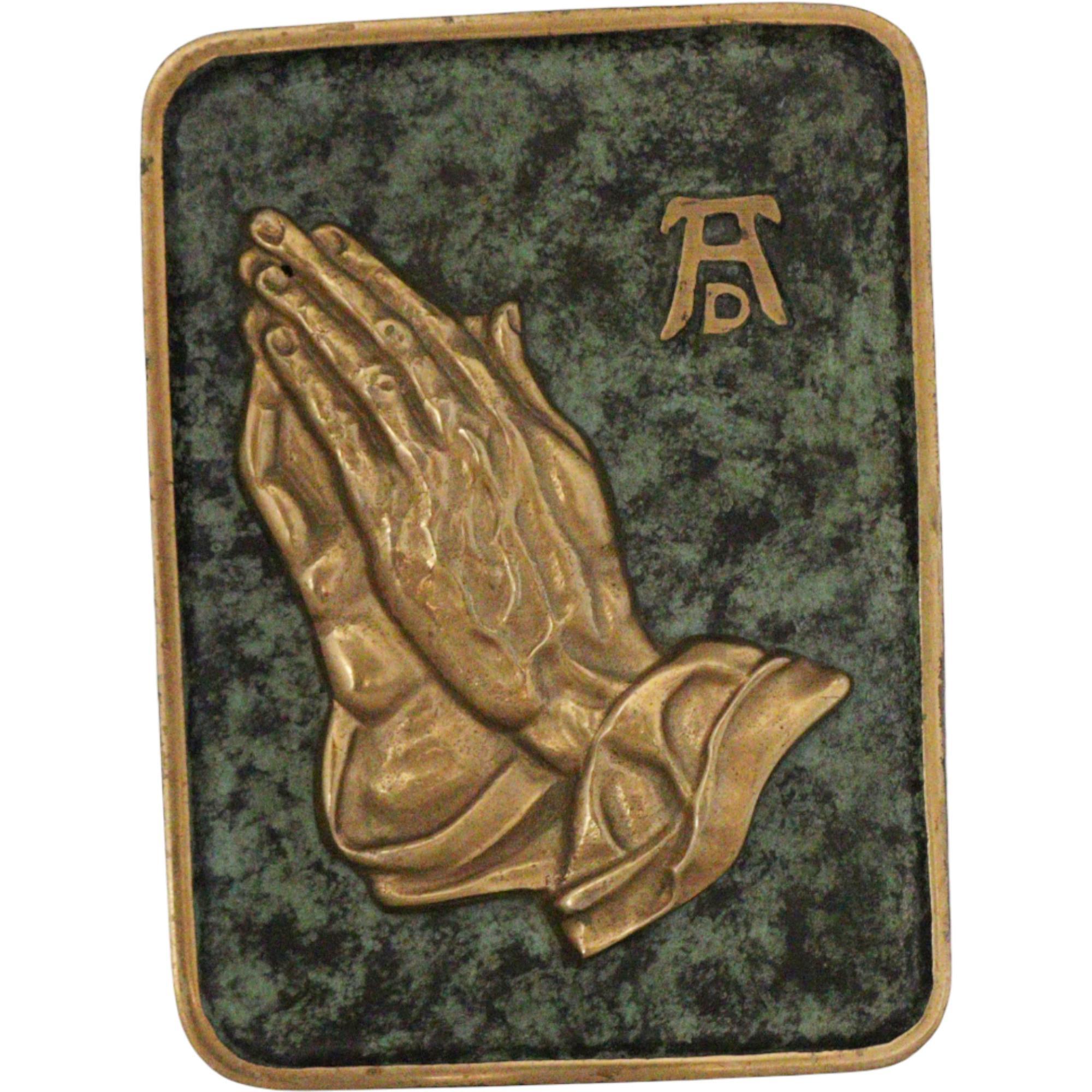 Bronze patinated praying hands plaque