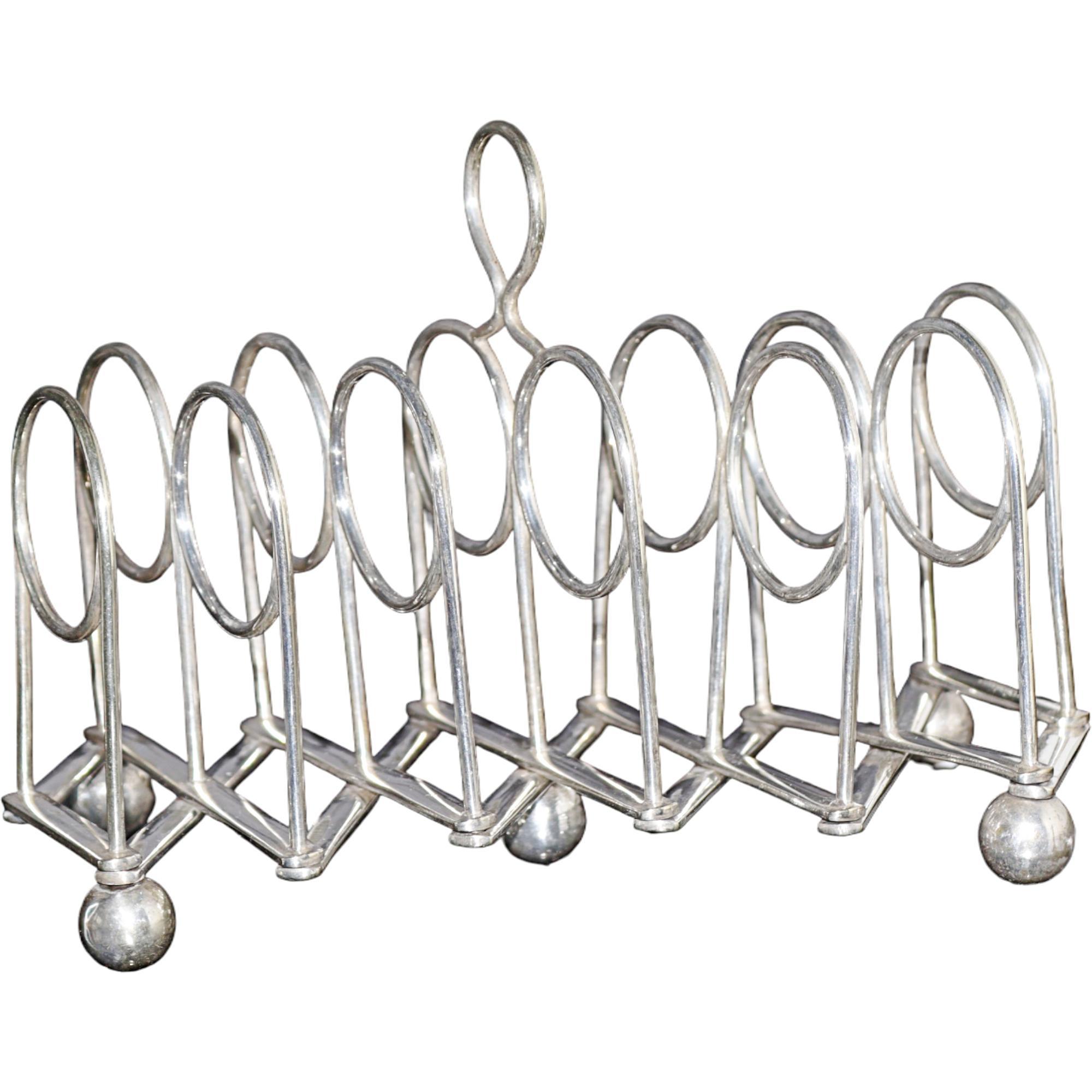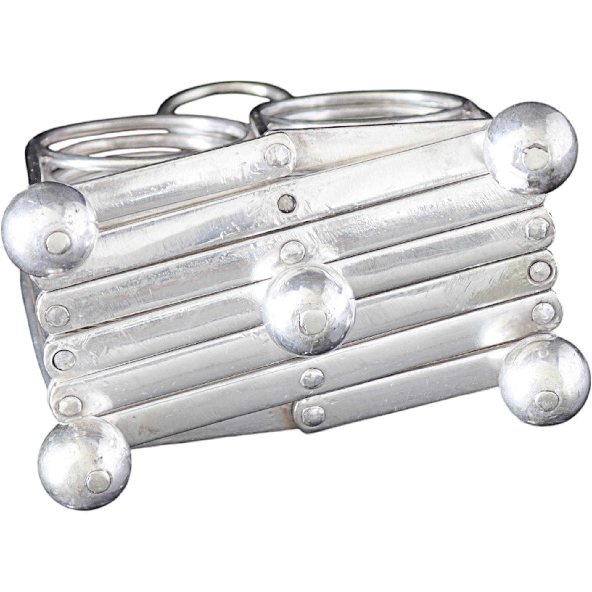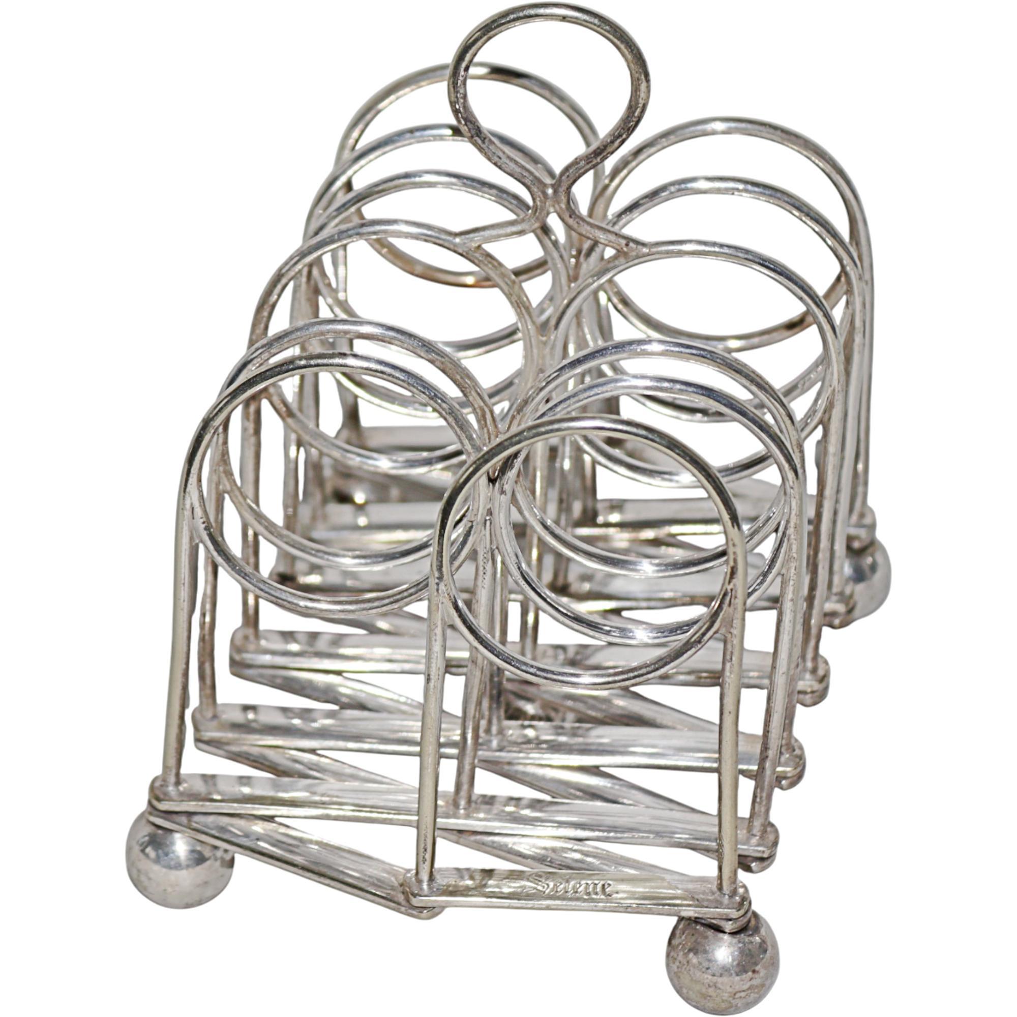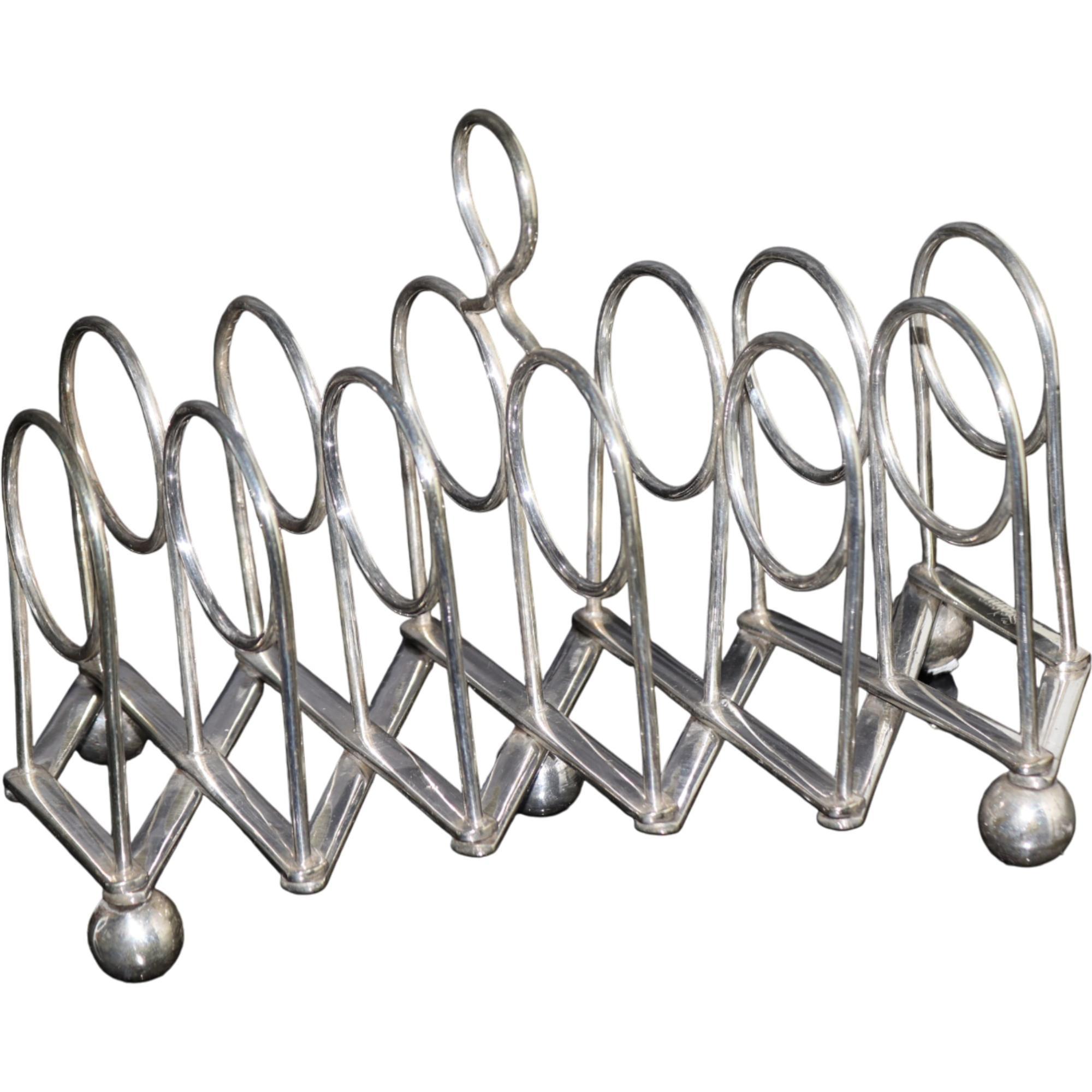Unusual late Victorian silver plate expanding toastrack, with arched lopped loop design, on balls feet, engrave Selene,measurement expanded 54 cm
