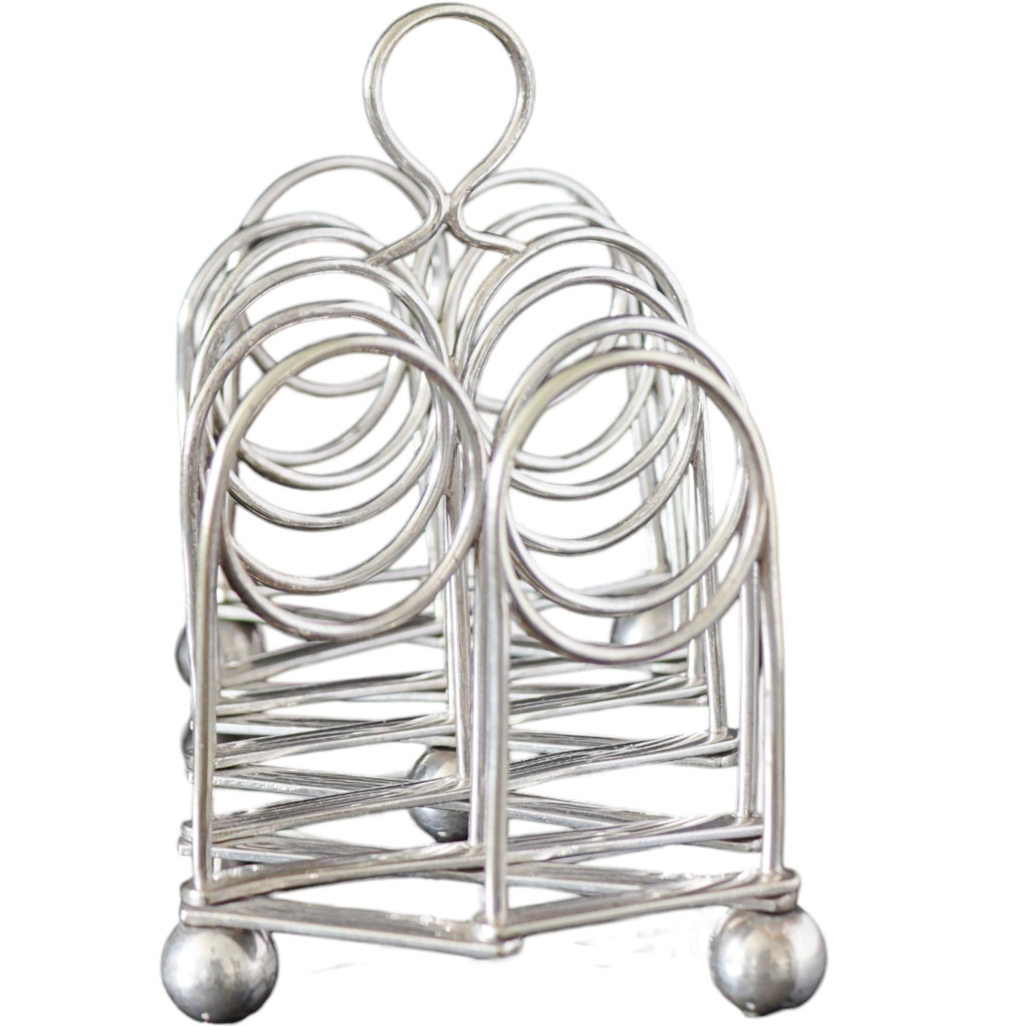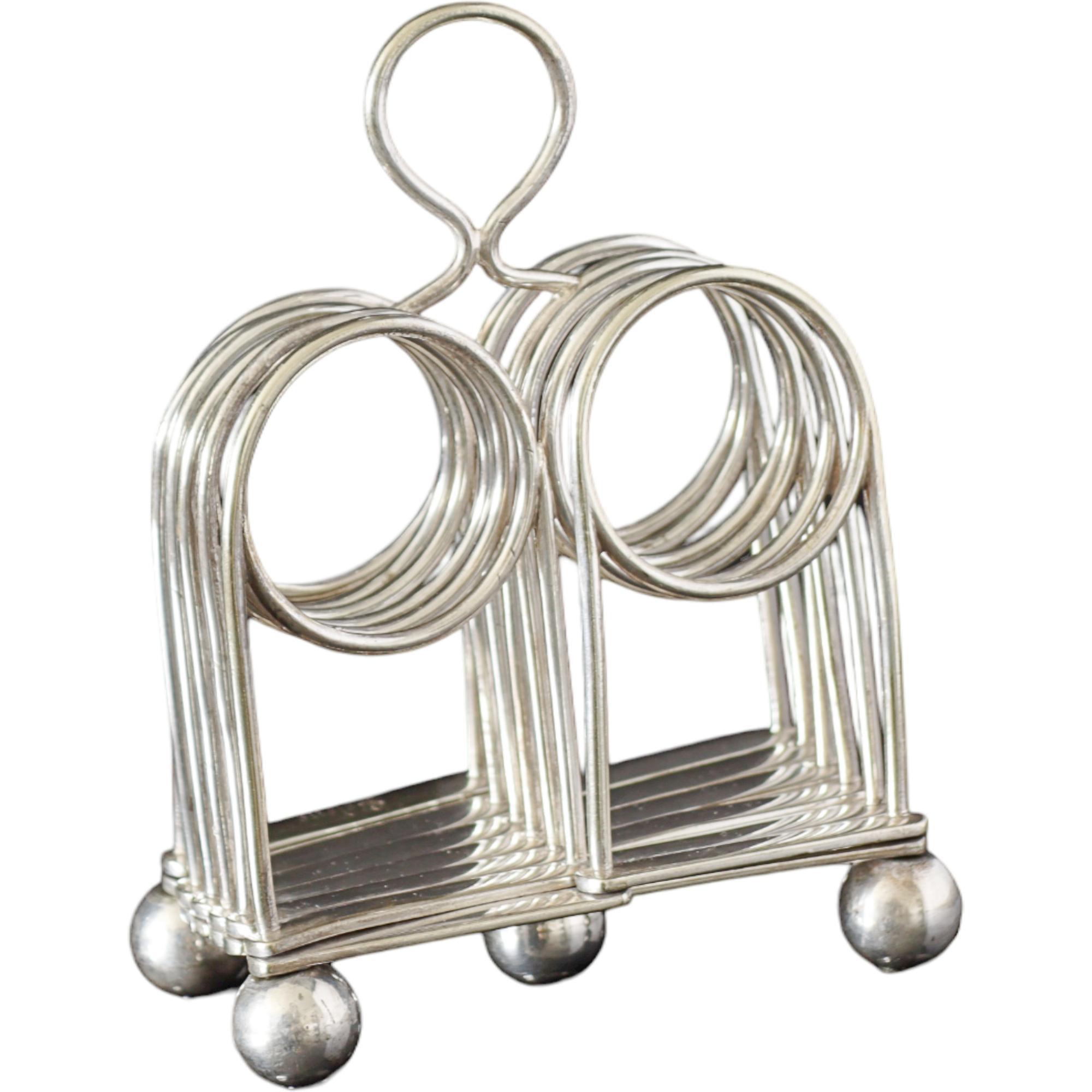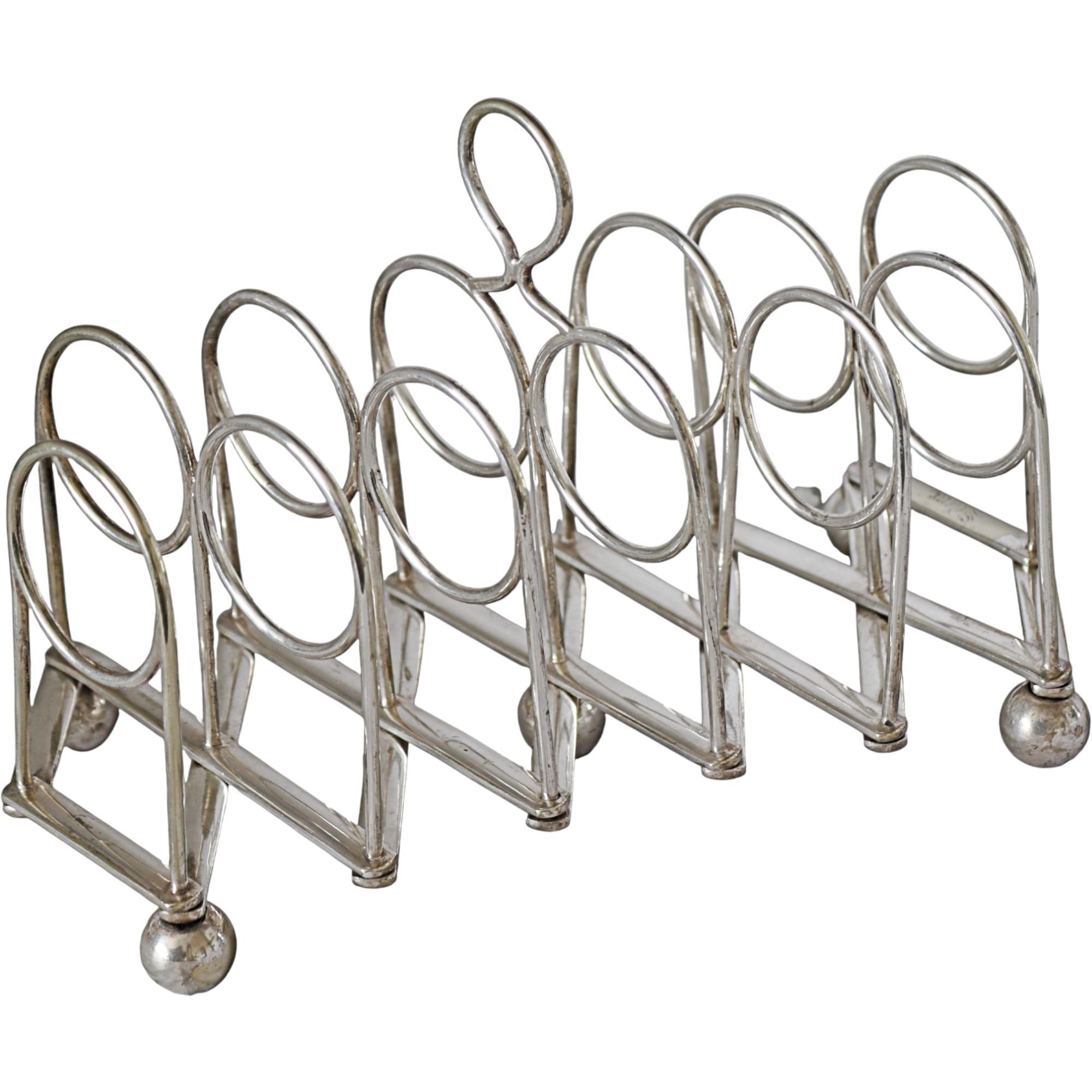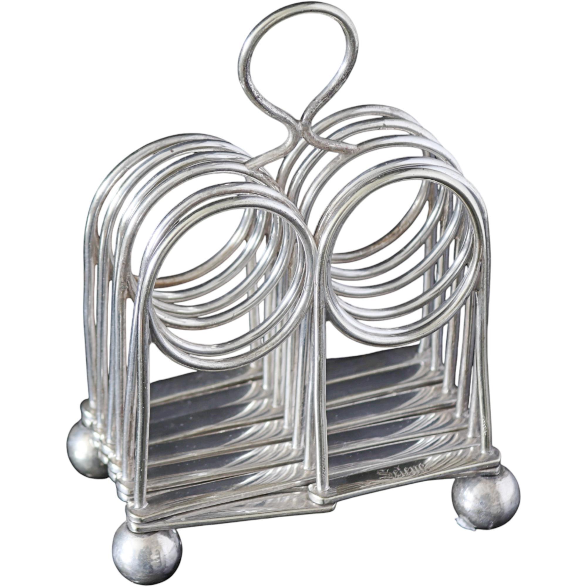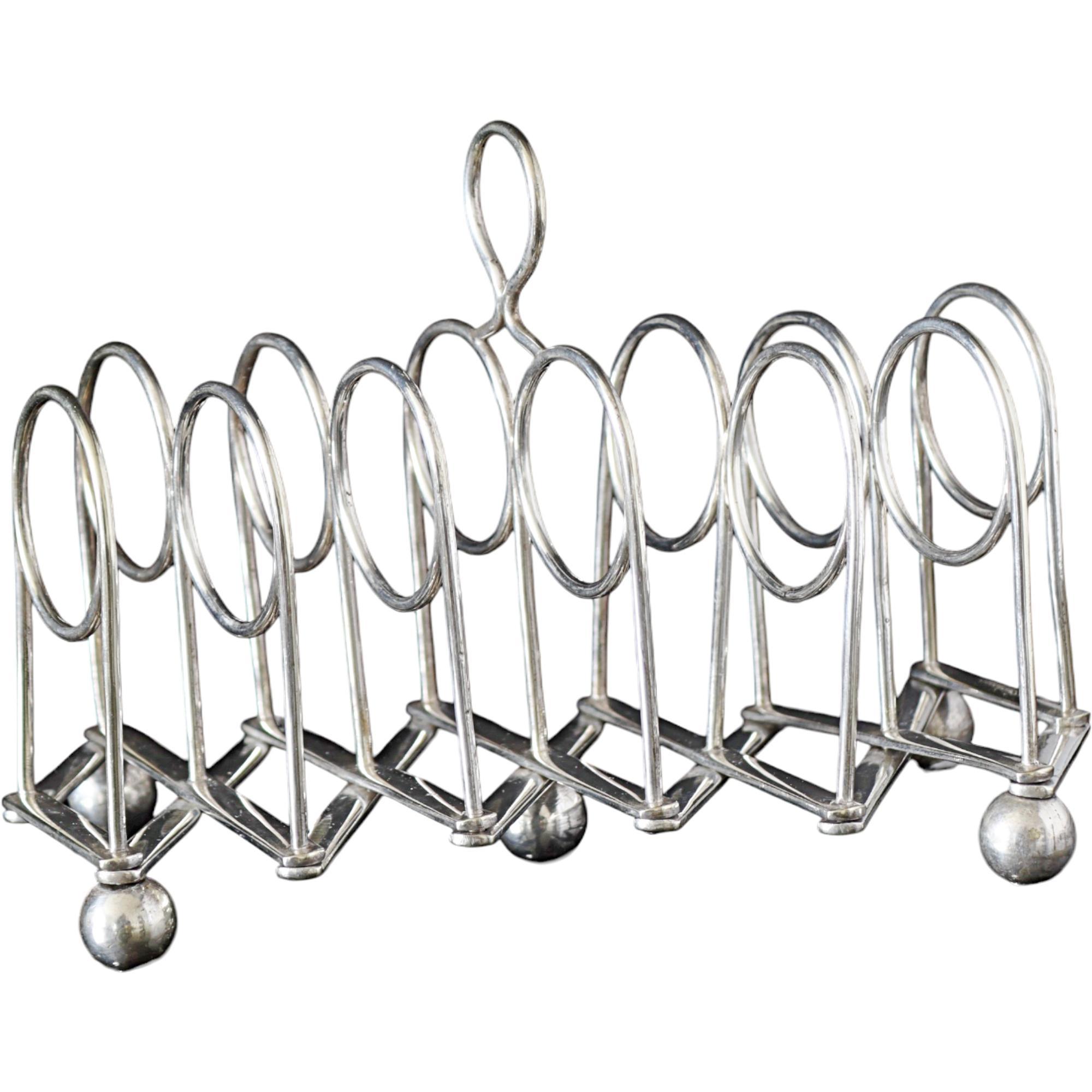Unusual late Victorian silver plate expanding toastrack, with arched lopped loop design, on balls feet, engrave Selene,measurement expanded 54 cm