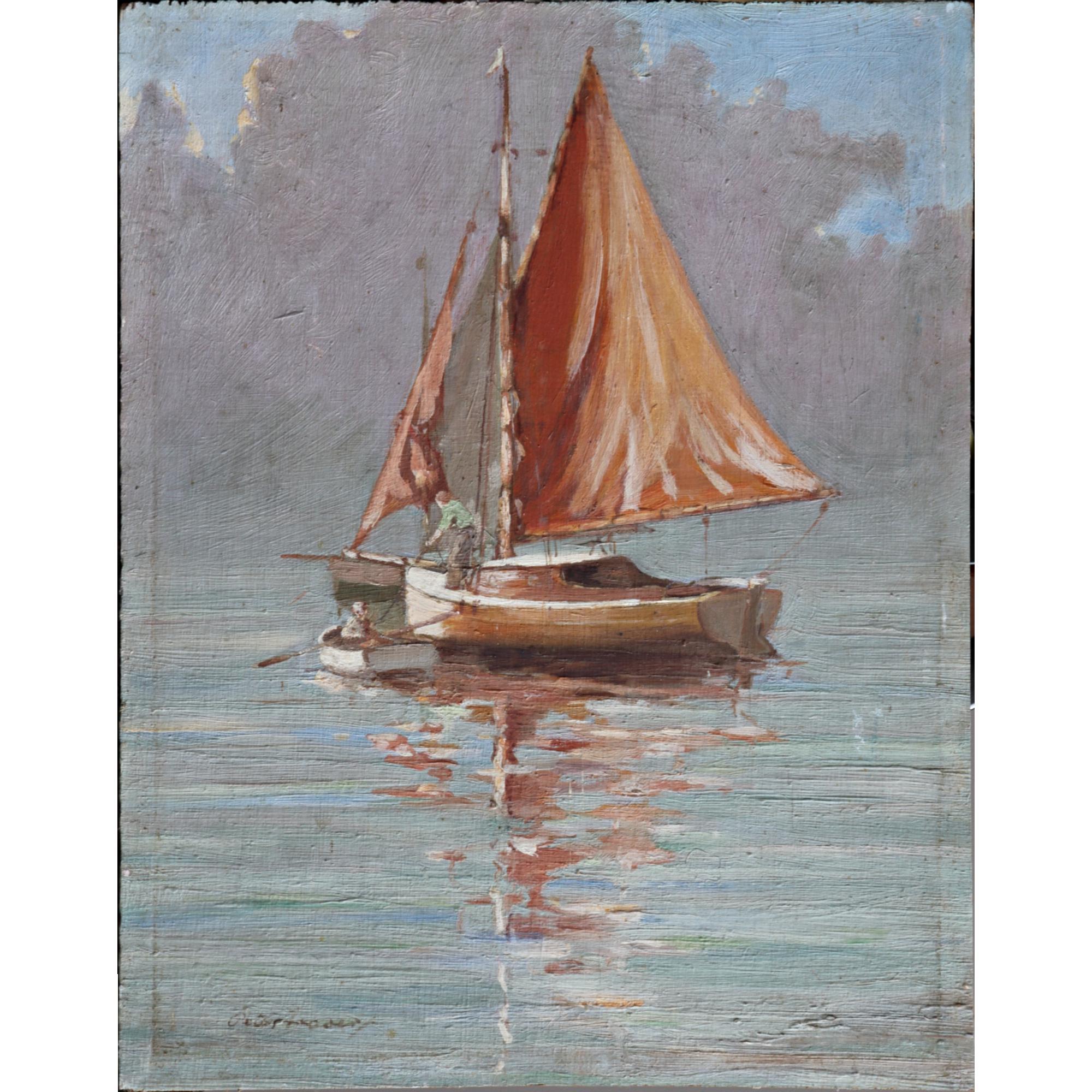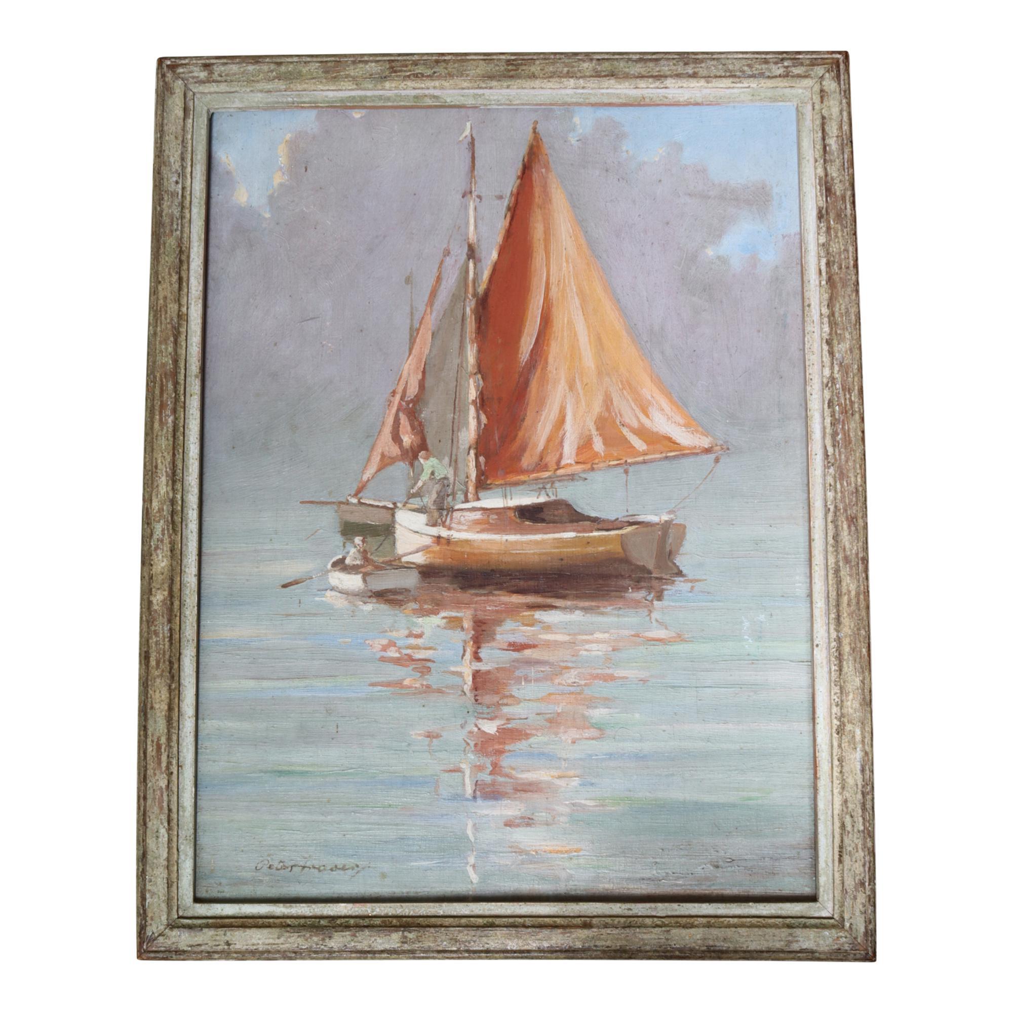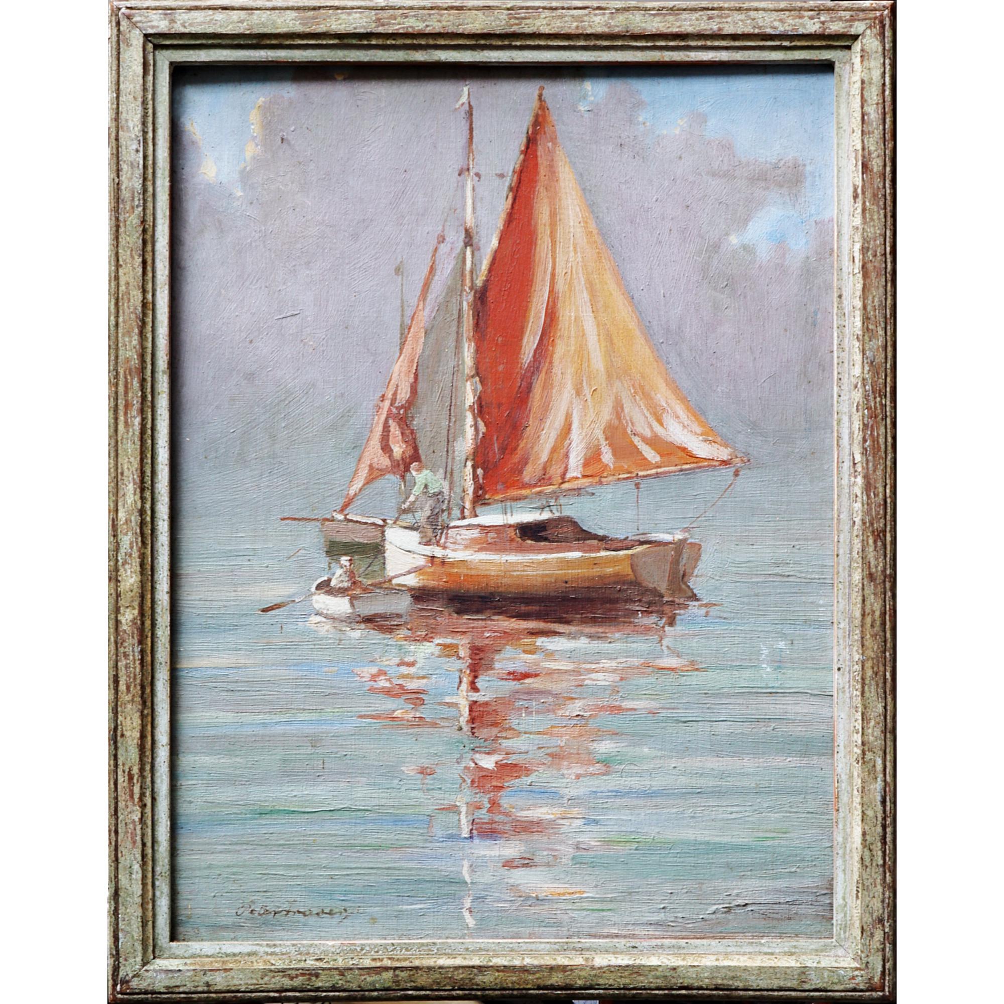 Peter Francis, British, oil on board, boat, painted frame, mid 20th century