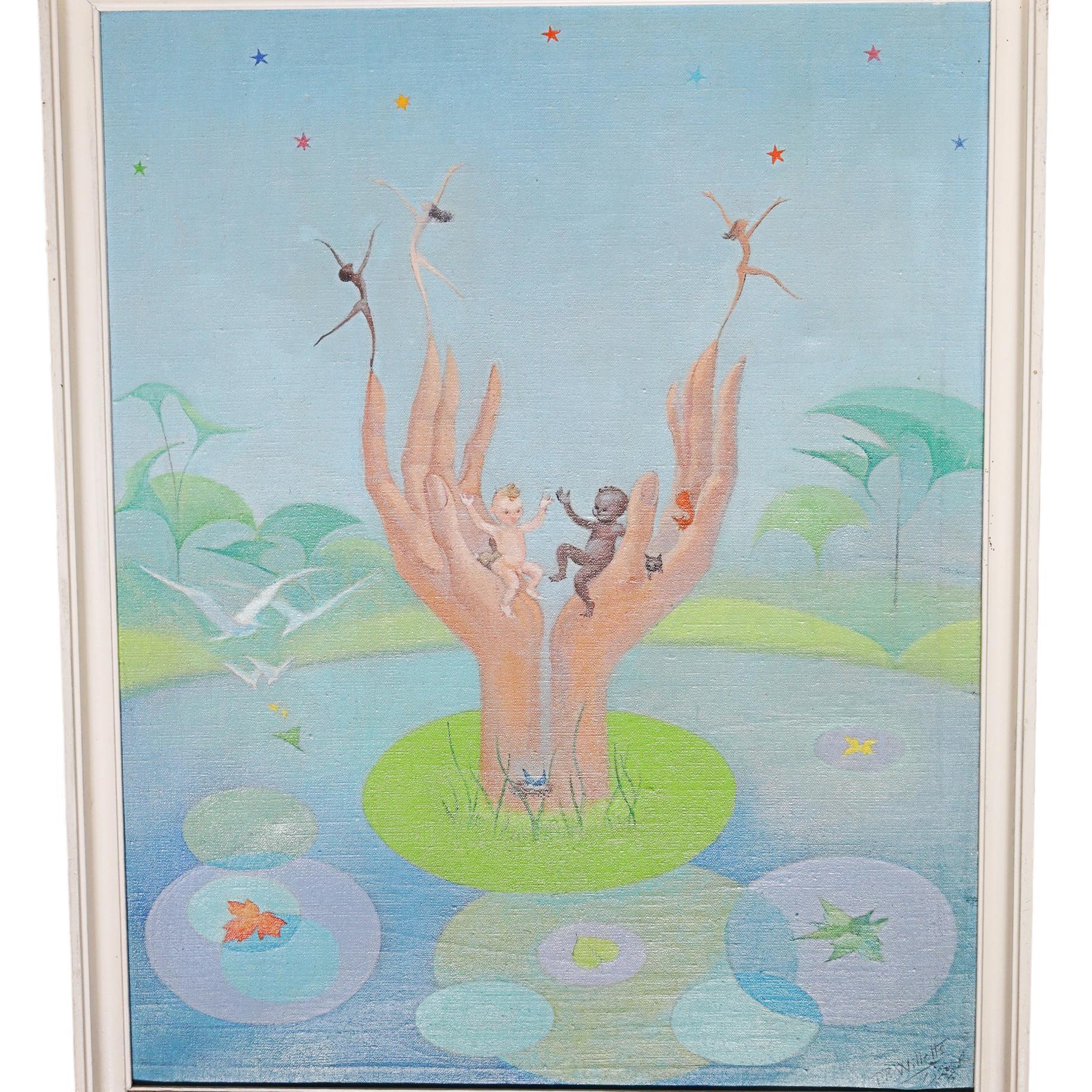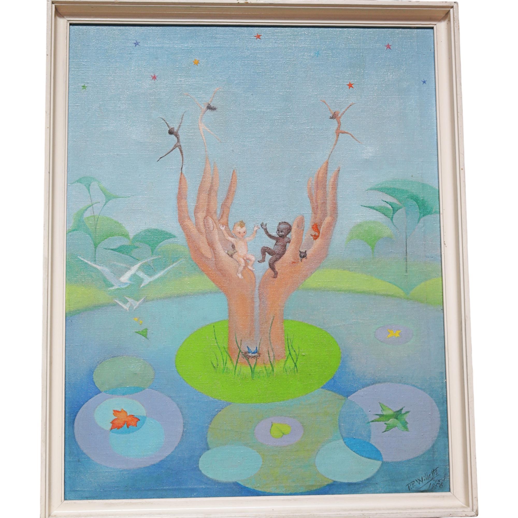 Phoebe Peto Willetts, nee Dickinson, British 1917-78, oil on canvas, The Creation, signed and dated 1956, in original artists frame